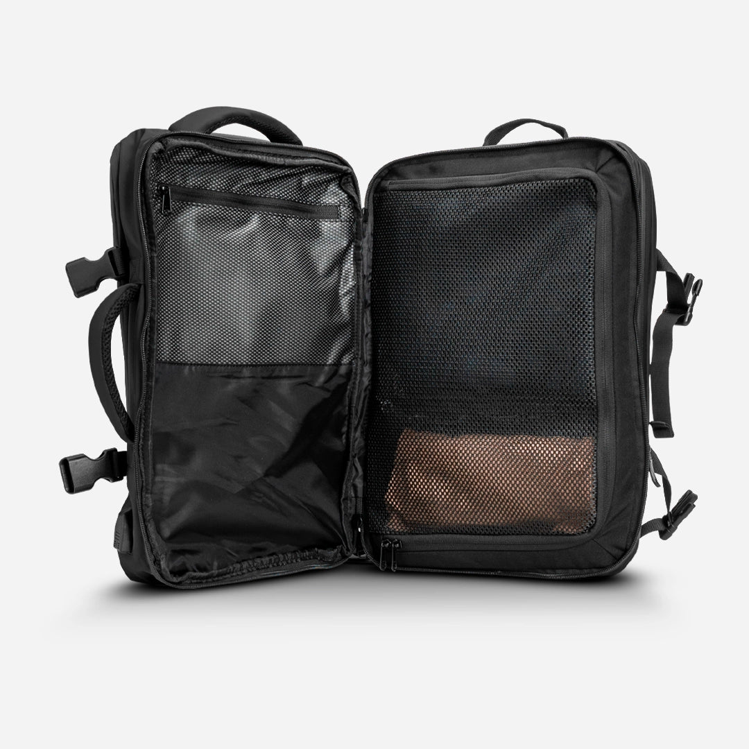 Tanto la mochila Carry On Pro como la Airless Bag cumplen con las regulaciones de las aerolíneas como equipaje de mano no facturado: 45 cm de Alto, 35 cm de Ancho y 20 a 25 cm de Profundidad (dependiendo de aerolínea*).