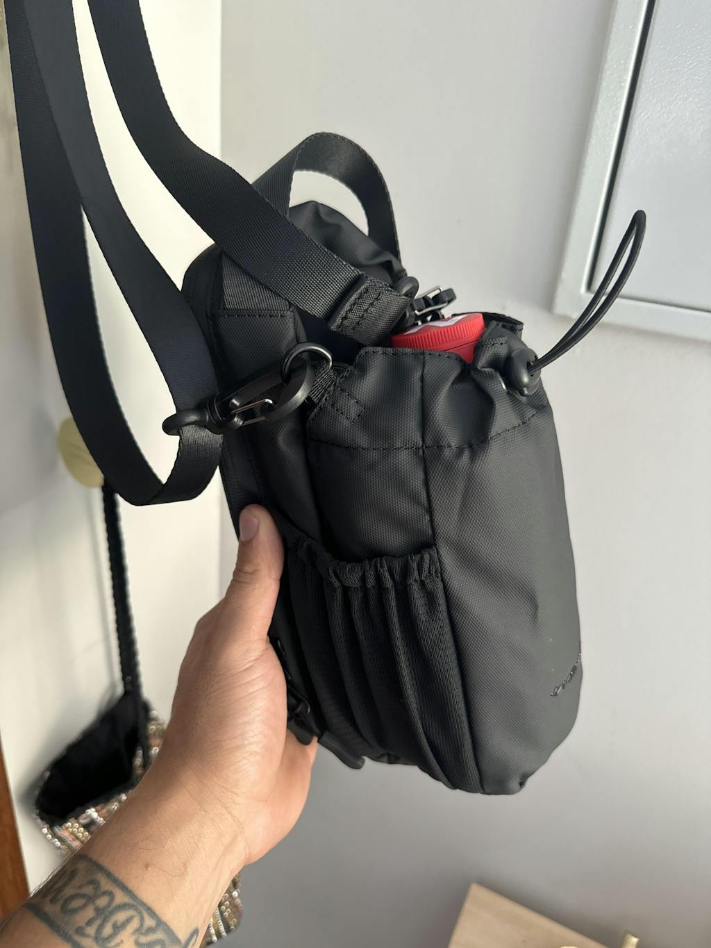- Organización Inteligente: Espacio dedicado para tu botella de agua, celular y otros esenciales, manteniendo todo accesible y ordenado.